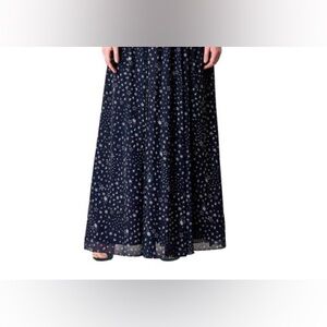 eShakti Wayward Fancies belted plunge star print georgette maxi dress 3/4X EUC