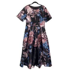 eShakti Women's Allover Floral Short Sleeve Hi-Low Maxi Gown Size 1X - 16W
