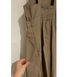 Hidden side zipper and back smocking for perfect fit.