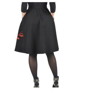 eShakti Women's Black Owl Embellished Poplin A-line Skirt SIZE-S/6