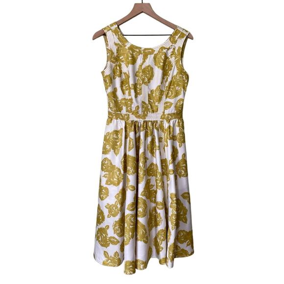 eShakti Women's Floral Dress Size MediumChartreuse Sleeveless Knee Length