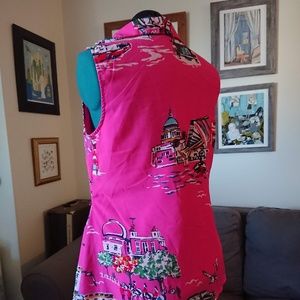I fell in love with the European cityscape print and was in denial that it didn't fit me right until the return period had expired. Please! Someone take this and **own** it like it needs to be. Custom fabric combo. See images for style description.