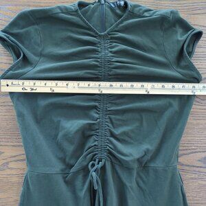 eShakti cap sleeve Ruched drawstring Cotton Jersey dark olive green dress 14