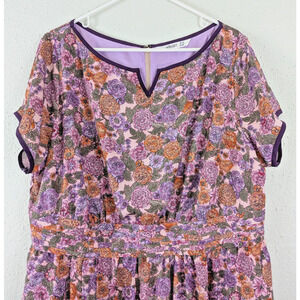 eShakti sz 2X 22W Dress Fit & Flare multi color floral print short sleeves 1288