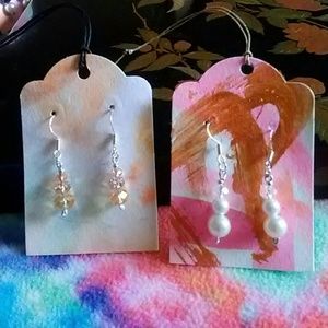 sterling silver ear wire, mixed metal findings, plastic and glass beads. 3 pair for $15