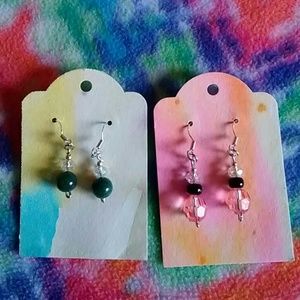 sterling silver ear wire, mixed metal findings, glass, plastic and stone beads. 3 pair for $15.