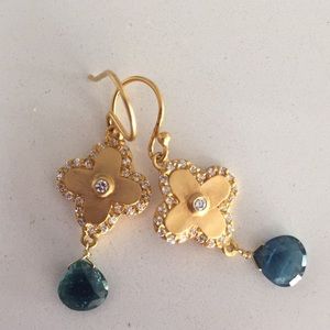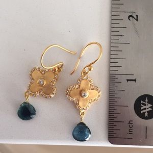 gold plated clove earrings with cz and genuine indicolite tourmaline