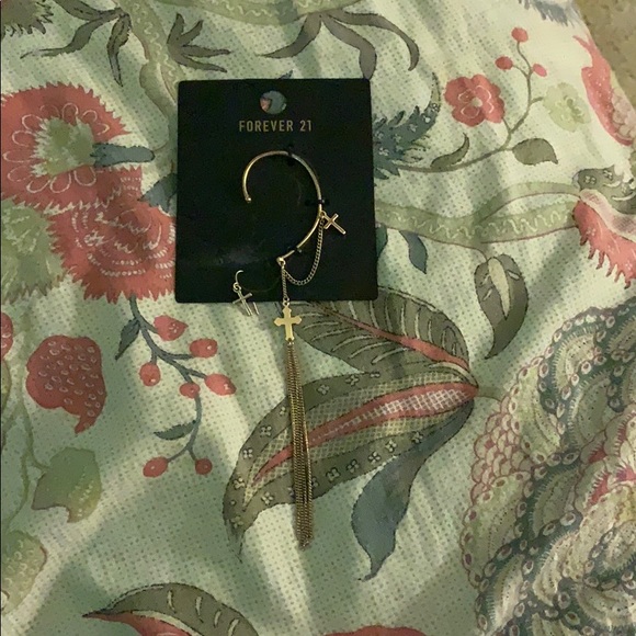 gold cross earring and ear piece dangle