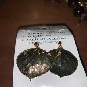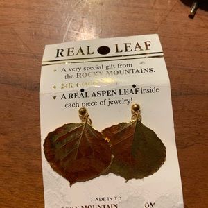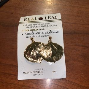 Rocky Mountain Leaf Company 24K Gold Finish Real Aspen Leaf Earrings NIB Gift