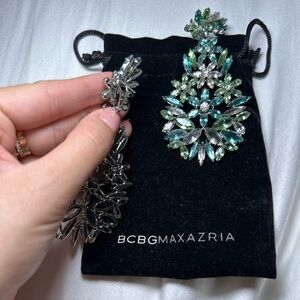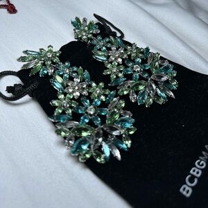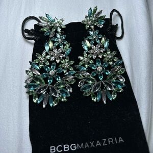 BCBGMAXAZRIA clip earrings. Blue green and clear crystals