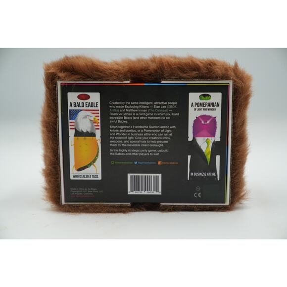 Bears vs Babies is the outrageously creative card game from the makers of Exploding Kittens, where players build bizarre monsters (like taco-eating bears) to devour swarms of horrible babies. With endless combinations and hilarious outcomes, this strategy-based game is perfect for 2–5 players ages 10+. Features the original fuzzy box edition for extra flair. Cards and instructions are included. A must-have for fans of absurd humor and quickfire battles. IC Code: BGS-0275