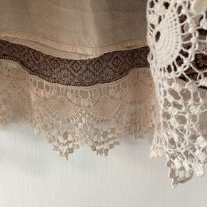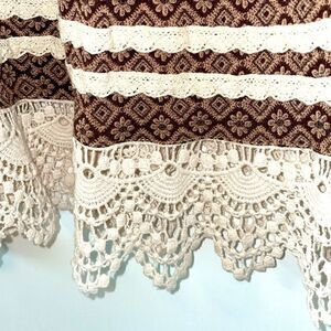 easel boho lace trimmed simple print dress with elbow sleeves size medium. Cottage core and granny core. Modern prairie. About 19 inches from under one arm to the other. Sleeves measure about 11 inches long from shoulder seam. About 32 inches from shoulder seam to hem including lace. Excellent used condition. EUC. Bundle with more items from my closet to save.