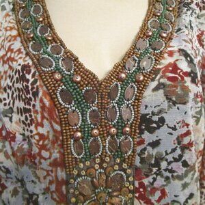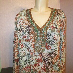 eci BEADED 2fer BLOUSE Top Size 22 3X LAYERED Tunic Tank MIX PRINT Artsy FLOWY