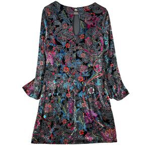 eci New York Dress Medium Textured Burnout Velvet Bell Sleeve Lined