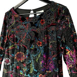 Black Textured Burnout Velvet Colorful Floral Pattern
