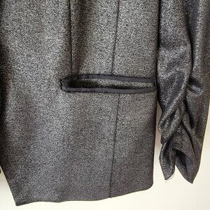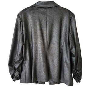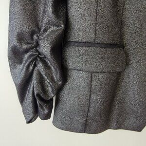eci New York Gray Silver Blazer Jacket Ruched Sleeve Collared Metallic Sz XL