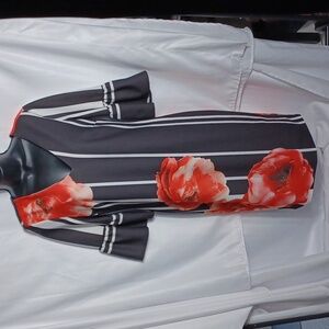 eci New York Sheath Dress Floral Bell Sleeve Size 6 VNeck Exposed Zipper