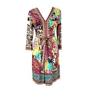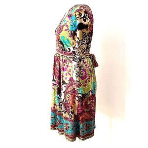 eci New York Multi-colored V-Neck Fit & Flare Dress SMALL