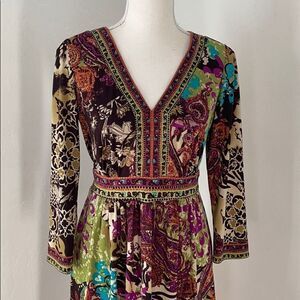 eci New York Multi-colored V-Neck Fit & Flare Dress SMALL