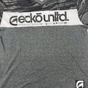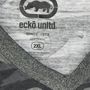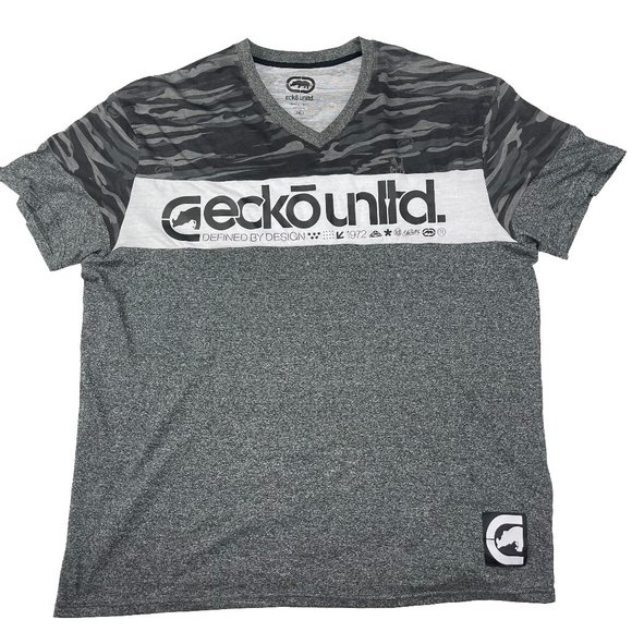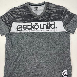 ecko unltd Men's Size 2XL Gray Black Graphic Logo V-Neck Short Sleeve Shirt NEW