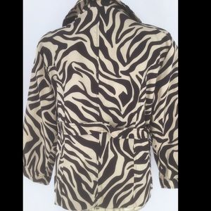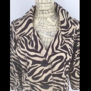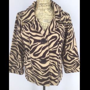 XL Beige/Brown Lined Jacket , 2 large buttons , built in belt, front pockets, 20” pit to pit, 23” long from shoulder, measured flat, 3/4 sleeves 19.5”, in gently worn condition, perfect for cooler weather