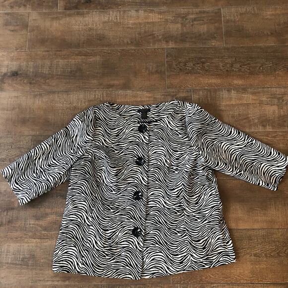 Black and white Zebra Print Button Down Blazer Jacket Coat excellent pre-owned Ecologie brand women's blazer/jacket/coat