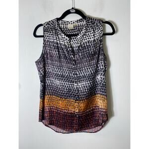 Excellent condition. ecru Top. Sleeveless with longer back. Black/white/orange/plum colors. Sz S