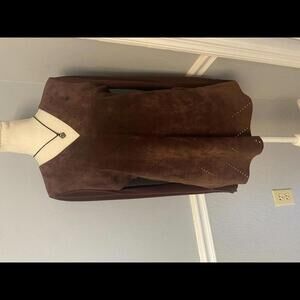 This is a beautiful long sleeve top crafted from soft suede material. Featuring a flattering V-neckline and intricate perforated detailing, this shirt is perfect for both casual and semi-formal occasions. The rich brown color adds warmth to your outfit, while the versatile design allows for easy pairing with jeans or skirts. Enjoy comfort and sophistication in this chic piece.