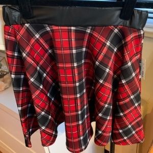 Sexy schoolgirl inspired Skater mini skirt is red plaid print.