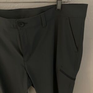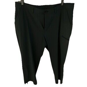 These Eddie Bauer pants in size 16 are a stylish and functional addition to your closet. The olive green stretch cargo pants feature a minimalist design with a flat front and straight leg style. Made of polyester and spandex, these pants are perfect for travel, casual outings, or workwear. The crop style and ripstop fabric make them ideal for the winter, fall, and spring seasons, while the solid green color adds a touch of nature-inspired style to your ensemble. Zip closure and a comfortable waist size of 40 inches ensure a perfect fit for a plus-size woman.