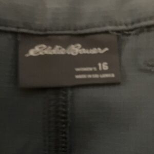 eddie bauer pants Size 16 Olive Green StretchZip Cargo Rip stop Crop Minimalist