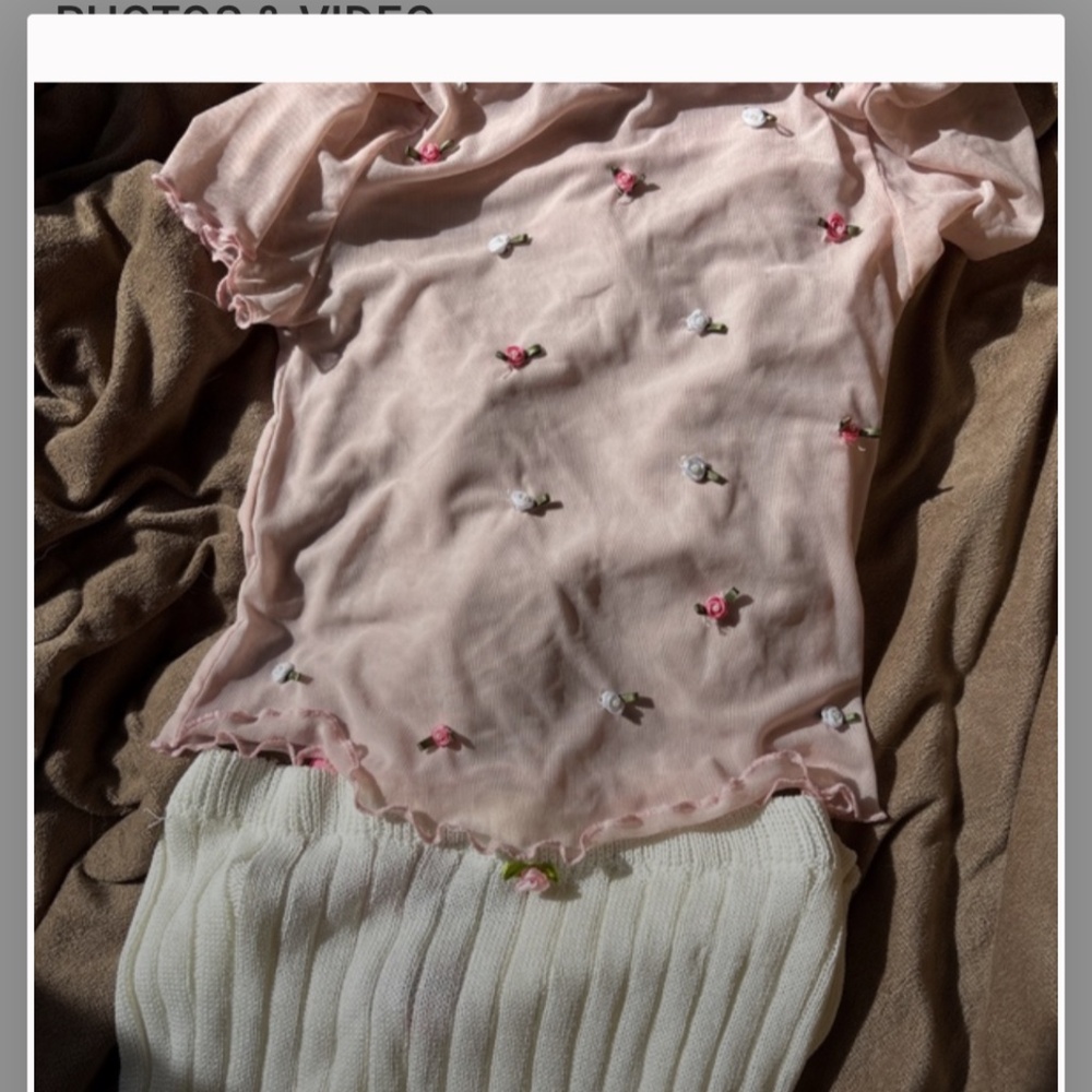 edikted white maxi skirt, floral design slit in the back along with an added blouse no name tag removed-used? Skirt is new trendy! Get ready for SPRING!!