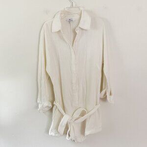 edit by nine / white gauzy button down long sleeve romper S