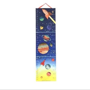 Measure up your child’s height against eeBoo's Space themed Growth Chart. This galactical themed growth chart is 36 inches long when unfolded and 10 inches wide. Easily hung with an attached gross grain ribbon.
