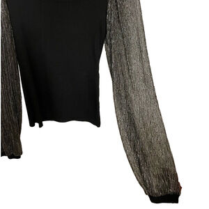 eesome Ribbed Knit Top Women’s Small Black Mesh Sheer Sleeves Fitted Square Neck