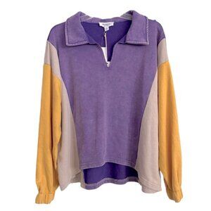 ee:some Size Med Purple/Yellow French Terry V-Neck Collared Long Sleeve Pullover