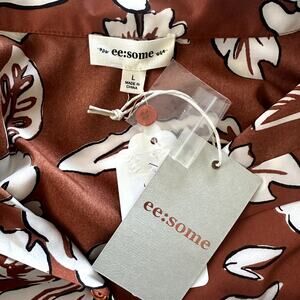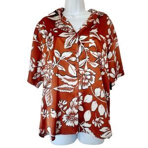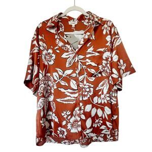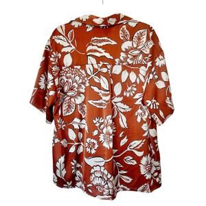 ee:some Women's Short Sleeve Aloha Shirt Floral Clay & White Size Large