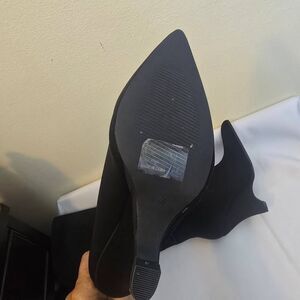 ego Black Point Toe Knee High Nylon Wedge Heel Boot, NWOT, Sz. 7