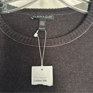 eileen fisher cotton silk dark grey sweater with contrast stitching front pocket