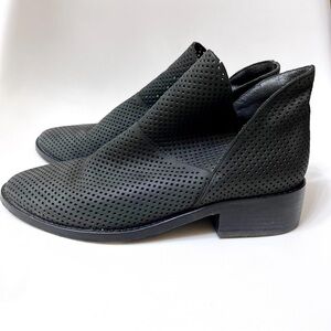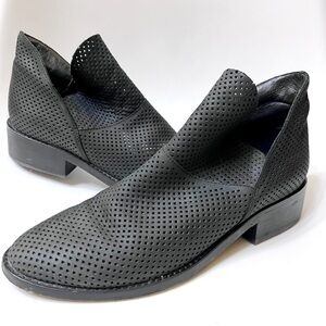 eileen fisher | leaf ankle bootie tulip split perforated leather black/gray 8