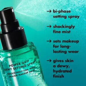 • Bi-phase setting spray with a makeup-gripping water phase and a moisturizing phase