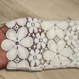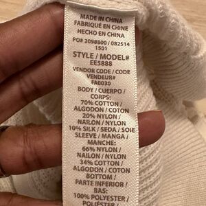 ella moss xs sweater knit v neck lace sleeves hi lo hem cream
