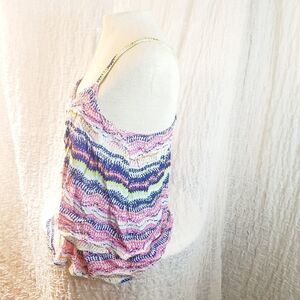 Multi-colored layered detaol spaghetti straps tank top. It's new with tags. Please refer to pictures for best description and condition verification.
