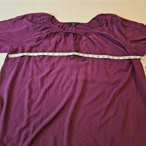 ellos Tie Neck Peasant Tunic, Plus Size 2X 26/28, Plum