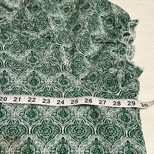 ellos Women's Top Green Geometric Short Sleeve Size 2X Blouse Cotton Tie Neck