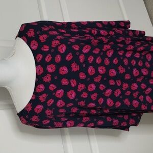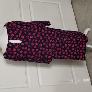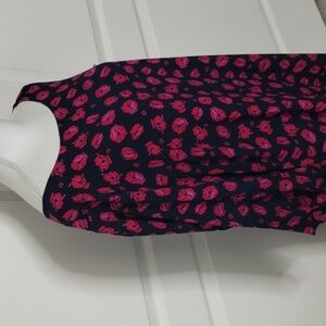 ellos dark navy and pink floral print boxy style dress size 24, 3/4 split sleeve