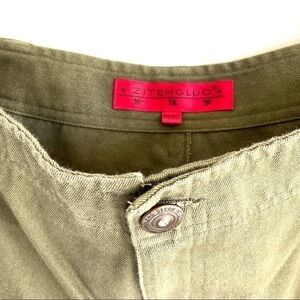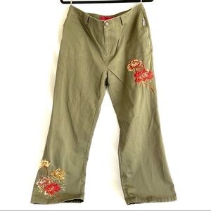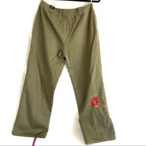 embroidered wide leg jeans army green