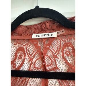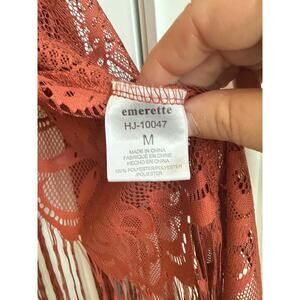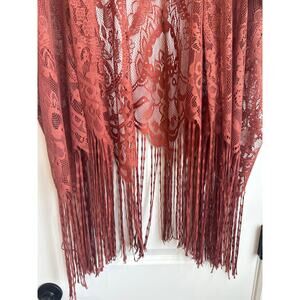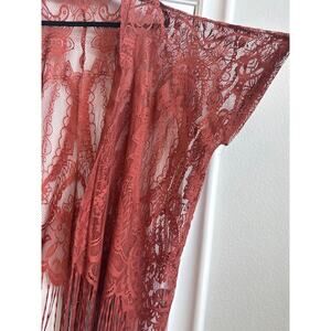 emerette Dusty Rose Pink Lace Open Front Kimono Cardigan with Long Fringe