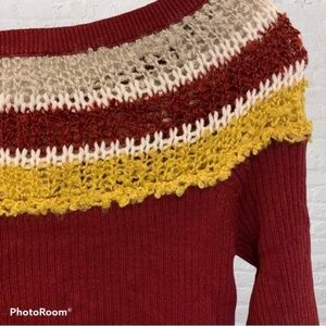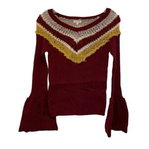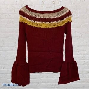 EN CREME Crop Burgundy and Multi Stripe Bell Sleeve Sweater.
