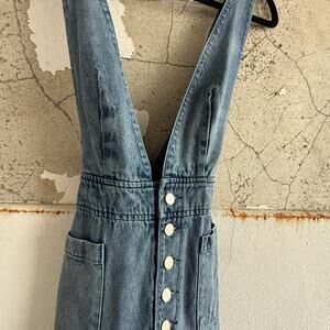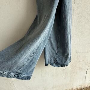 en crème Vintage Style Denim Wide Leg Jumpsuit Deep V Button Front Size M